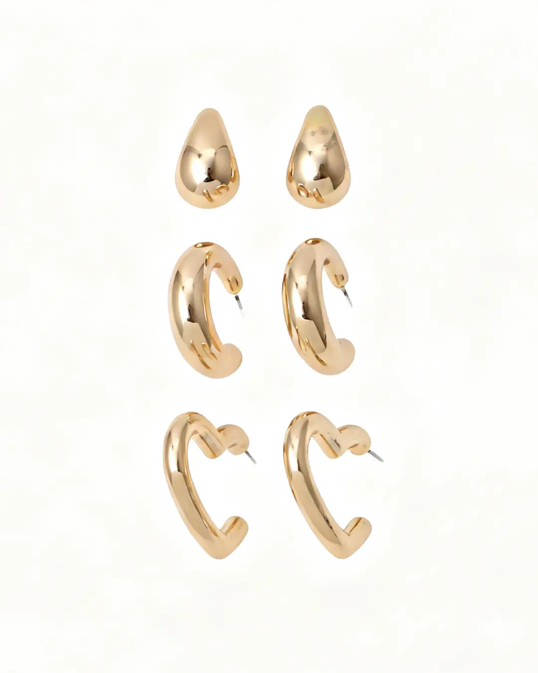 This versatile?14K Gold Earrings Set?offers three wearable styles. The?14K Gold Earrings Set?includes hoop, stud, and drop designs with secure fastenings.
