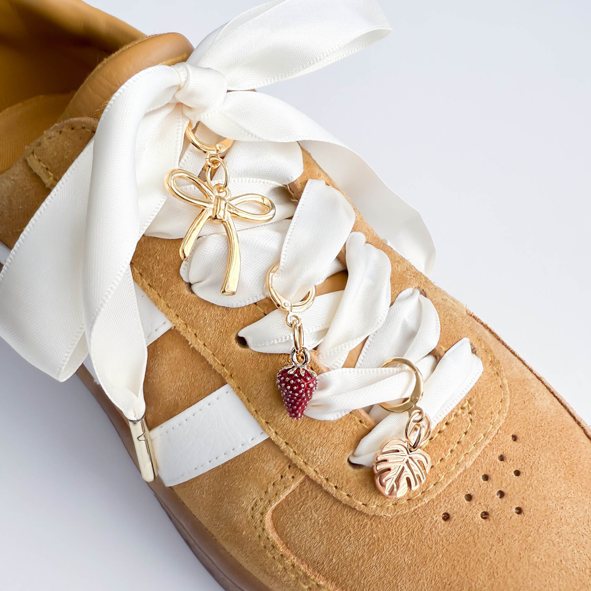 Celebrate nature with satin lace fruit leaf?shoes charms.