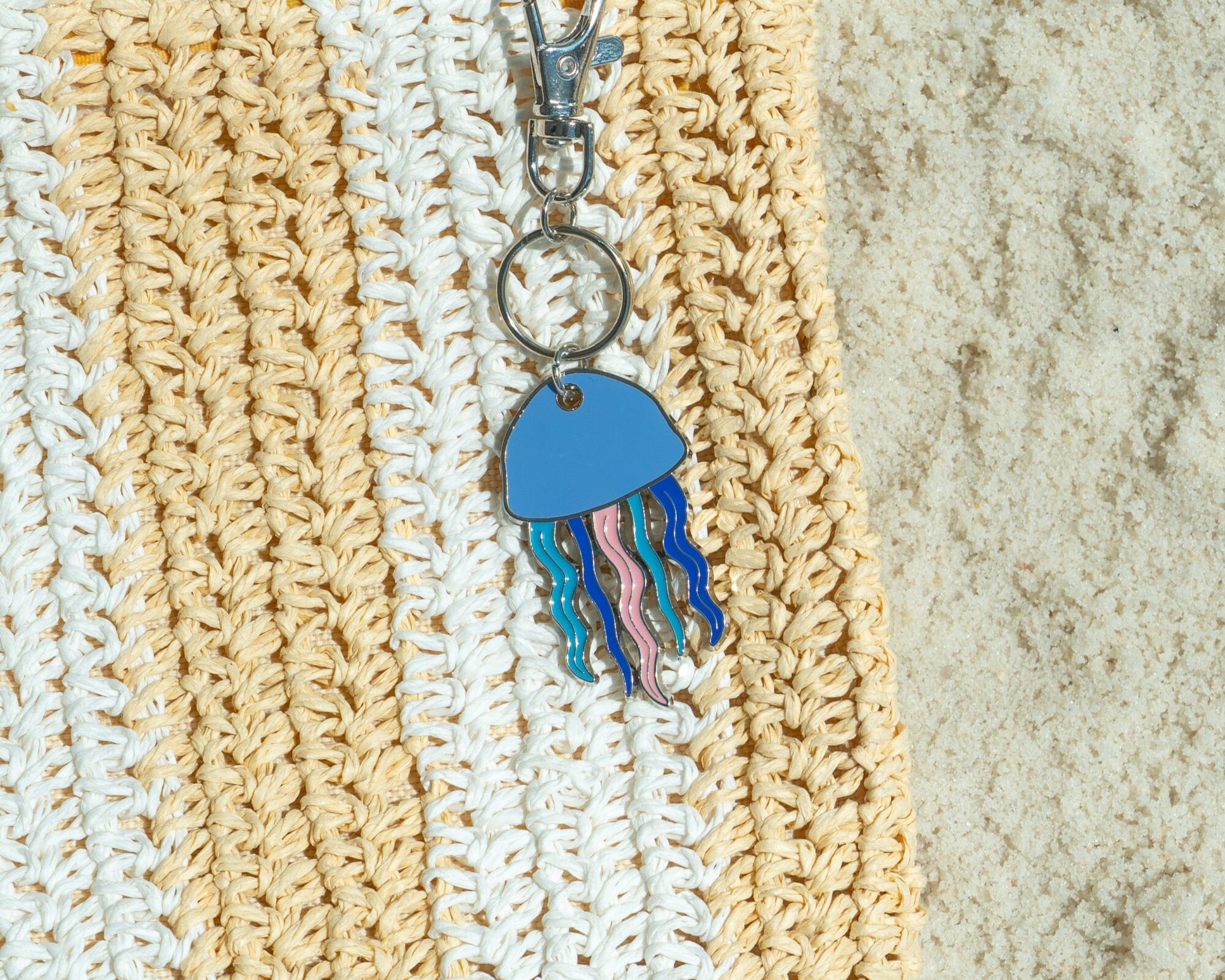 Bring a touch of the ocean to your accessories with?jelly fish keychain bag charms.
